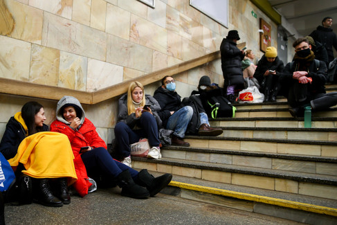 As estações de metrô de Kiev foram tomadas desde o início da noite por multidões que deixaram suas casas e procuraram abrigo nas instalações subterrâneas, temendo bombardeios russos sobre a cidade.